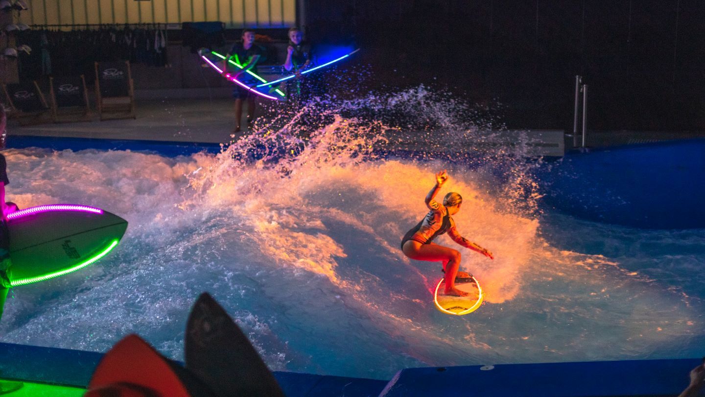 Als Highlight einer jeden Veranstaltung können Sie bei uns das Fliegen lernen oder surfen auf der Indoor-Welle. Zur Stärkung des Teamgeists und Motivation Ihrer Teilnehmer trägt unser Outdoor-Hochseilgarten zum perfekten Firmenerlebnis bei - besonders Mutige probieren den Flying-Fox bei Nacht.