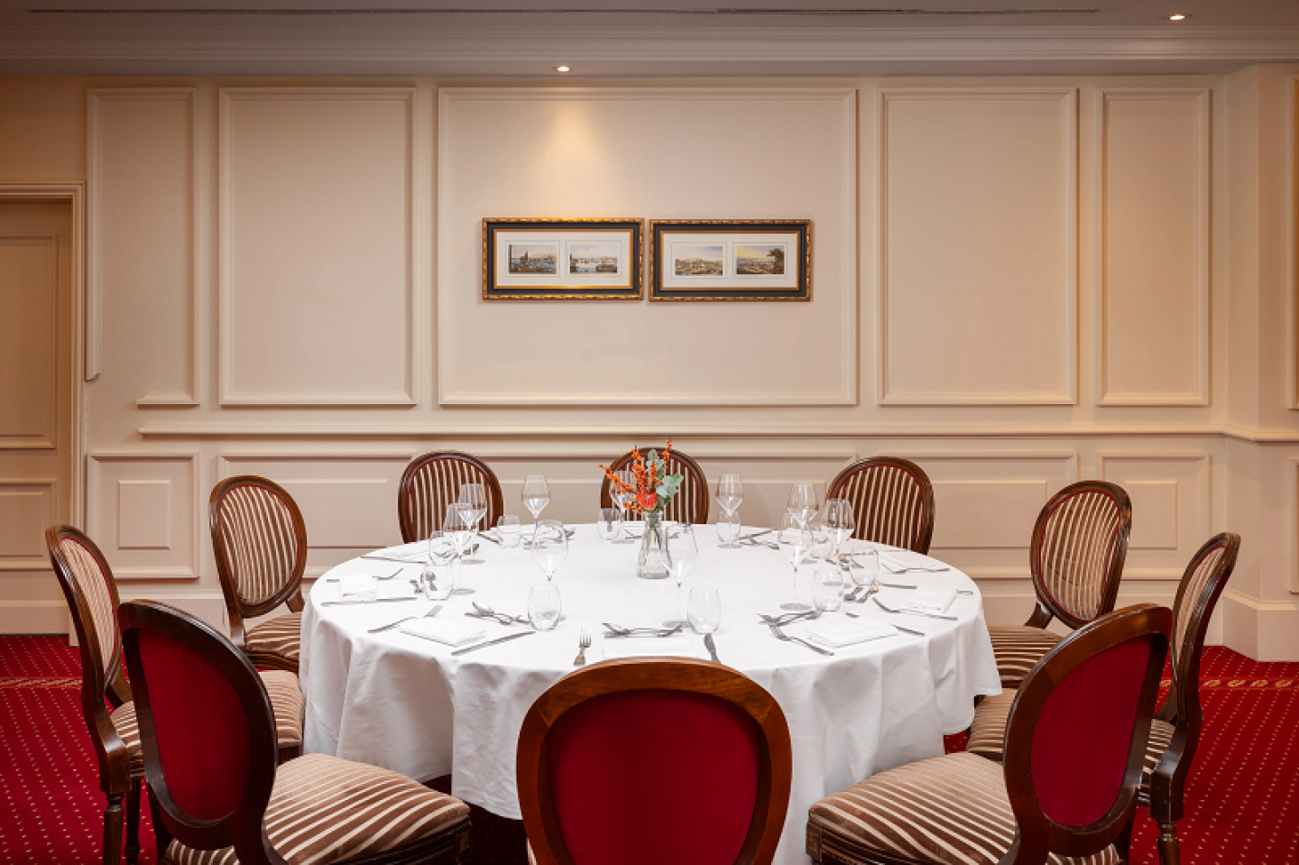 On 500 m² of event space, the Hotel Royal offers six combinable rooms with natural daylight and top technology - perfect for business events, celebrations or gala dinners. Whether in the spacious Salon Rousseau with terrace for up to 240 guests, the flexible Voltaire-Salons, the elegant Saal Eaux-Vives for private dinners or the large Saal Gustave-Ador - every conference here is a stylish experience. An exclusive terrace rounds off the offer and is ideal for breaks or receptions.