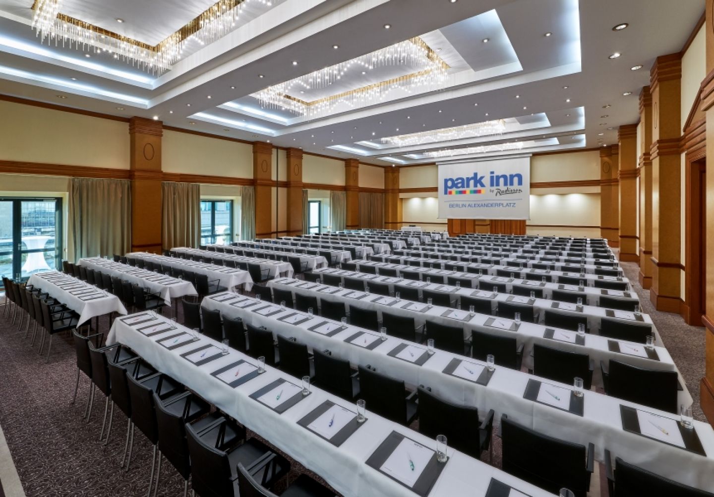The Hotel Park Inn by Radisson Berlin Alexanderplatz convinces by its location directly at Alexanderplatz, with its height of 150 meters and the underground parking spaces at the hotel. The 11 variable event rooms and an event location on the 37th floor with roof terrace offer space for over 300 participants each. In the 1012 rooms and suites with modern air conditioning technology, you and your participants will find restful sleep after a strenuous day at the conference.