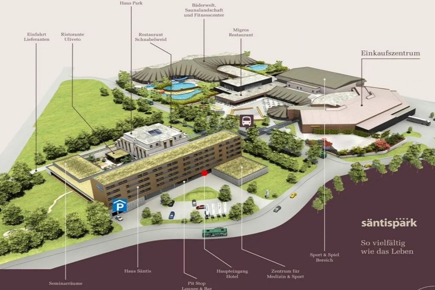 Die grosse Hotel-Parkanlage ist der ideale Ort zum Entspannen und Sonnenbaden. In unmittelbarer Nähe lädt das Freizeitzentrum Säntispark mit umfangreichem Wellness- und Sportangebot sowie Einkaufsmöglichkeiten zum Verweilen ein.